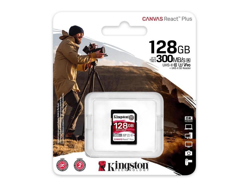 - .128GB SDXC Card (Class 10) UHS-II , U3, Kingston Canvas React Plus "SDR2/128GB" (R/W:300/260MB/s)