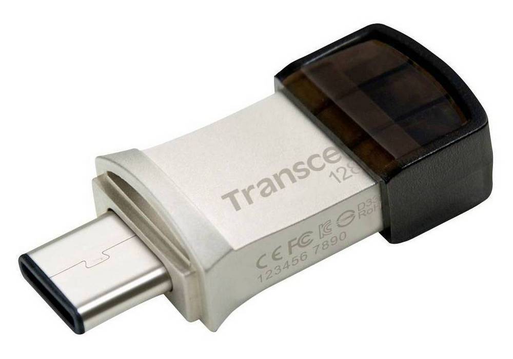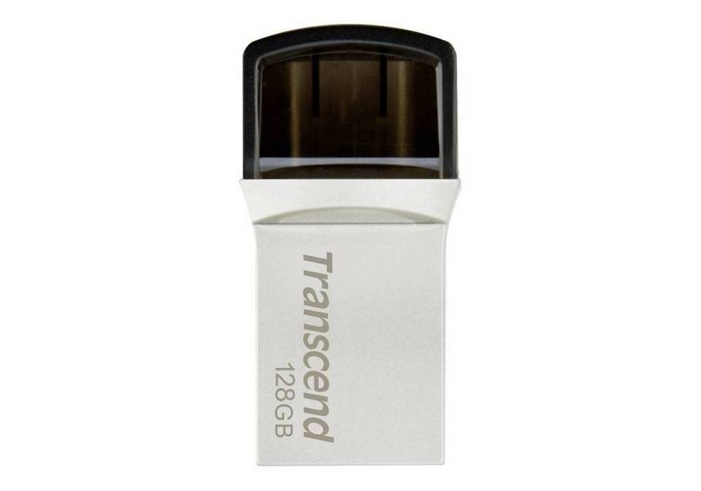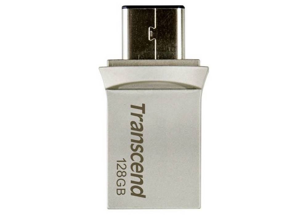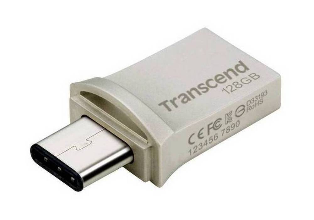 - 128GB USB3.1/Type-C Flash Drive Transcend "JetFlash 890", Silver, Metal Case, OTG (R/W:130/30MB/s)