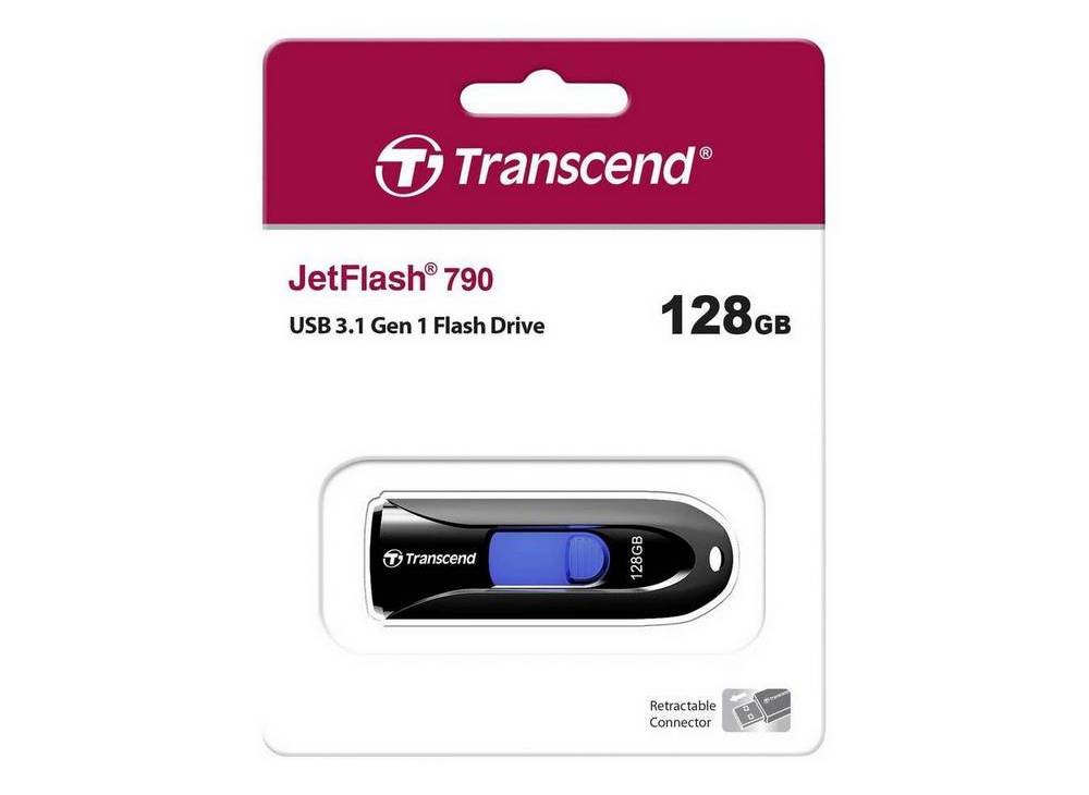 - USB Flash накопитель Transcend JetFlash 790, 128Гб, Чёрный/Синий
