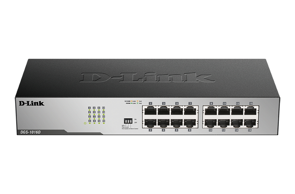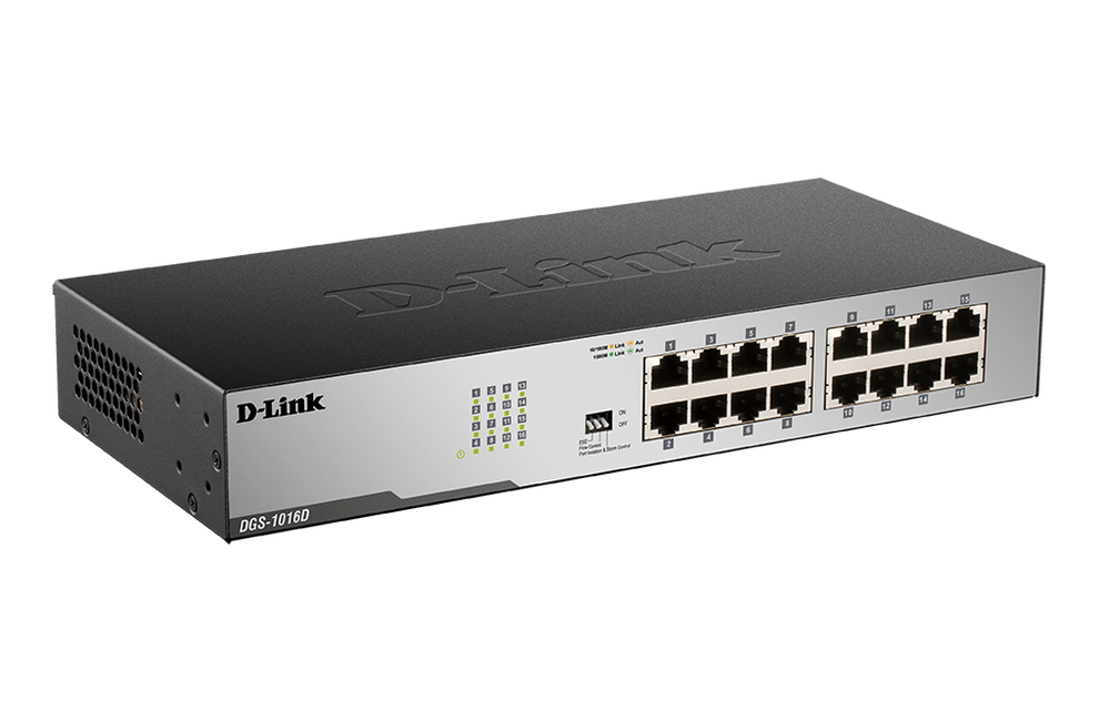 - Сетевой коммутатор D-Link DGS-1016D/I1A, 16x 10/100/1000 Мбит/с