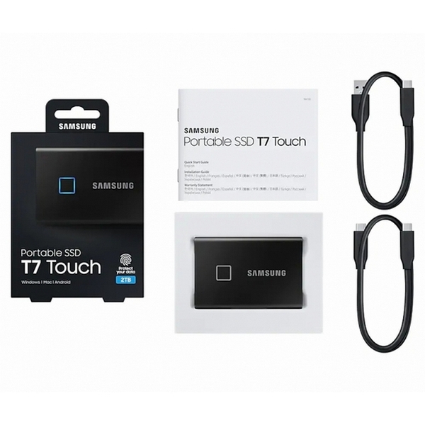 - Внешний портативный SSD накопитель Samsung Portable SSD T7 Touch, 2 TB, Чёрный (MU-PC2T0K/WW)