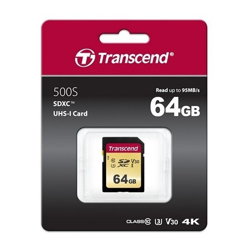- Карта памяти Transcend SDXC Class 10, 64Гб (TS64GSDC500S)