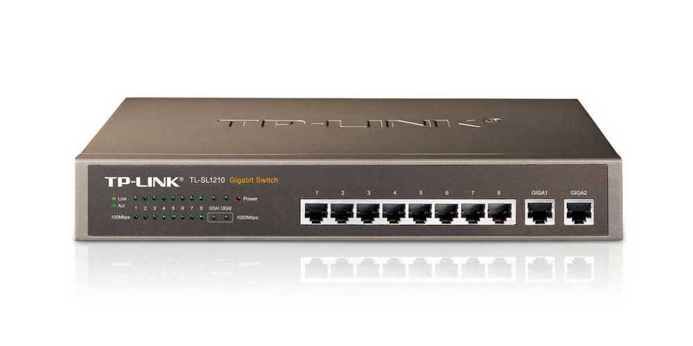- Сетевой коммутатор TP-LINK TL-SL1210, 8x 10/100 Мбит/с, 2x 10/100/1000 Мбит/с