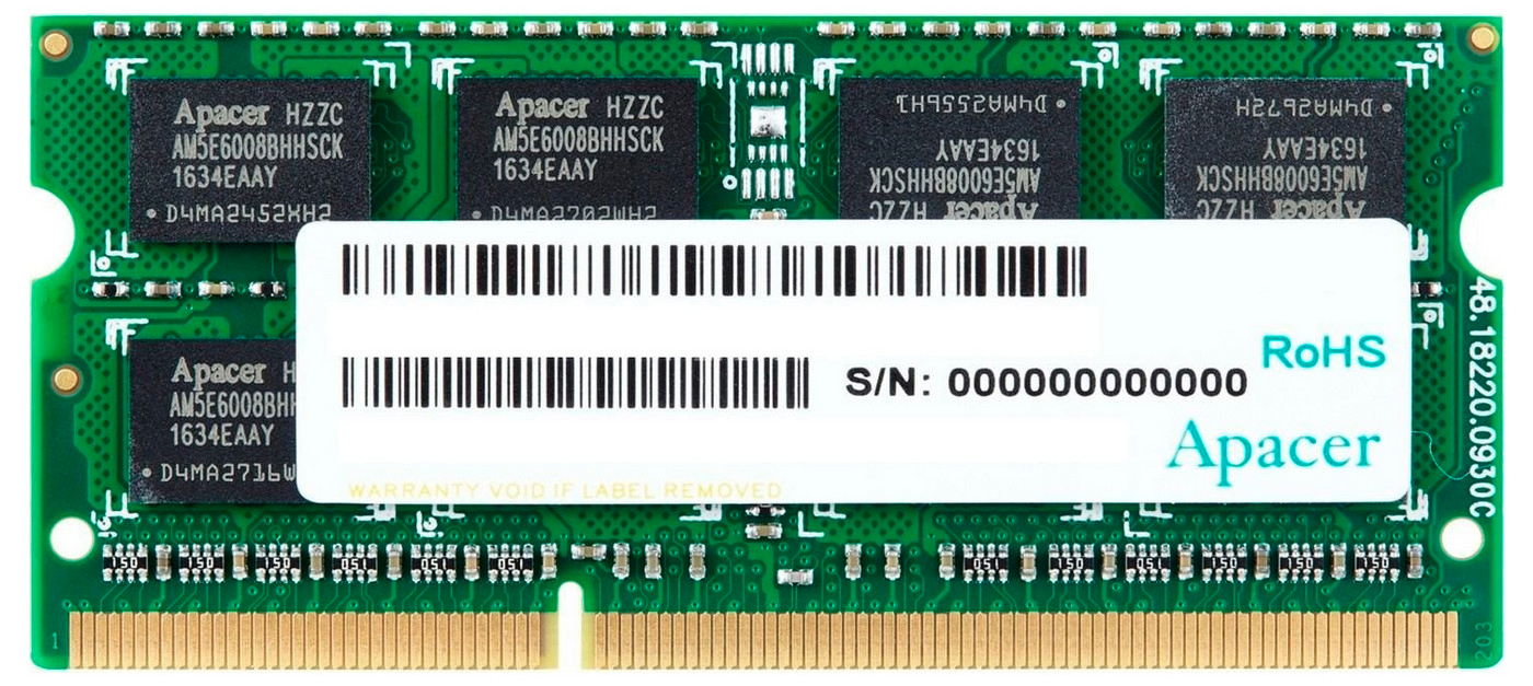 - Оперативная память Apacer AS08GFA60CATBGJ, DDR3 SDRAM, 1600 МГц, 8Гб, AS08GFA60CATBGJ