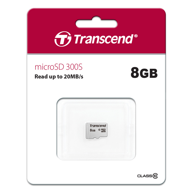 - ..8GB MicroSD (Class 10) UHS-I (U1) , Transcend "TS8GUSD300S" (R/W:95/45MB/s)