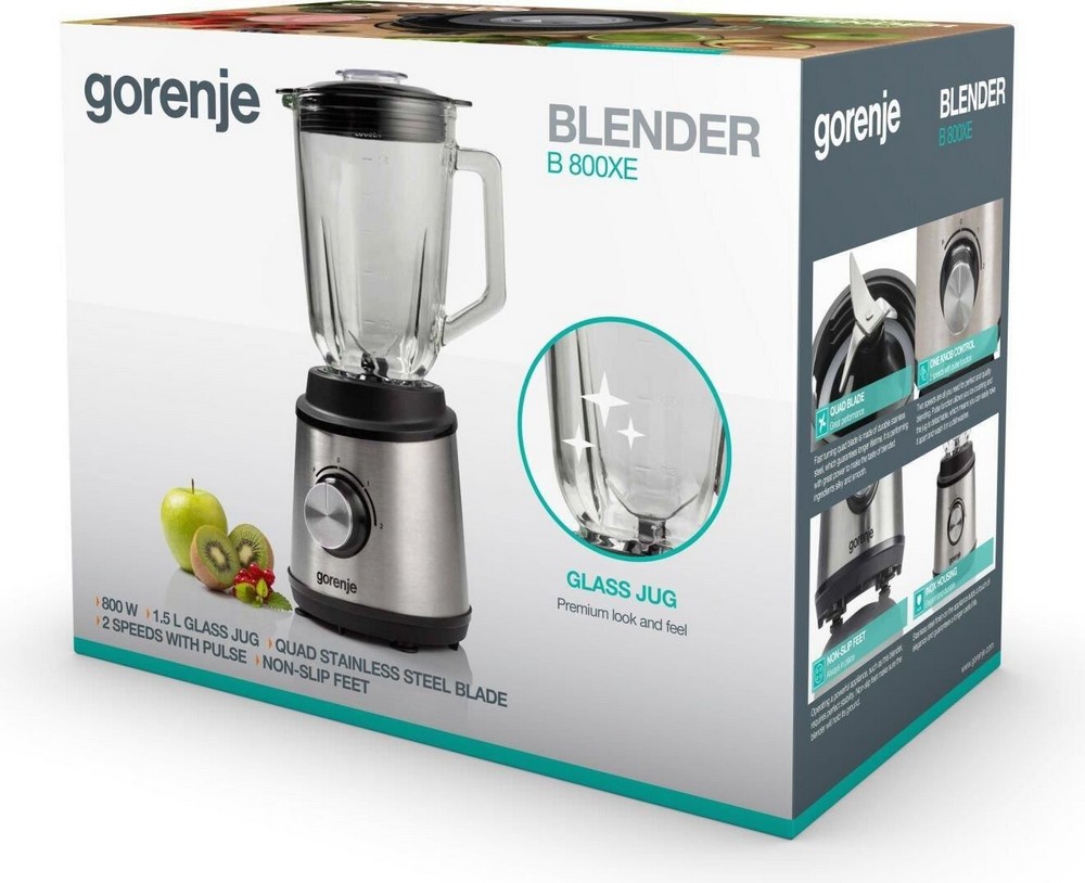 - Стационарный блендер Gorenje Glass jug B800XE, Нержавеющая сталь