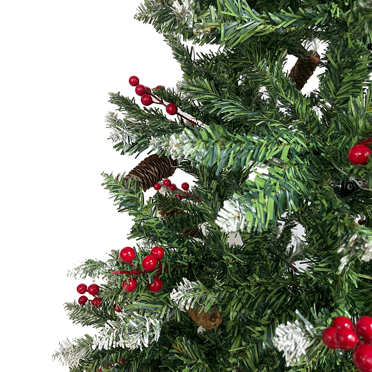 Ищете праздничную елку с натуральным шармом для своего интерьера? Искусственная елка высотой 210 см, украшенная шишками и ягодами, с 1000 пышными ветками и заснеженными кончиками, станет великолепным выбором для создания атмосферы зимней сказки! Ее насыщенный зеленый цвет в сочетании с белыми заснеженными акцентами делает елку невероятно реалистичной, словно она только что перенесена из заснеженного леса. Натуральные элементы в виде шишек и ягод добавляют особую элегантность и уют. Прочный металлический подставка гарантирует стабильность и безопасность конструкции, позволяя разместить множество украшений. Не требующая ухода, эта елка сохранит свой свежий вид на протяжении всех праздников. С такой елкой ваш дом станет местом, наполненным теплом, волшебством и рождественским духом!