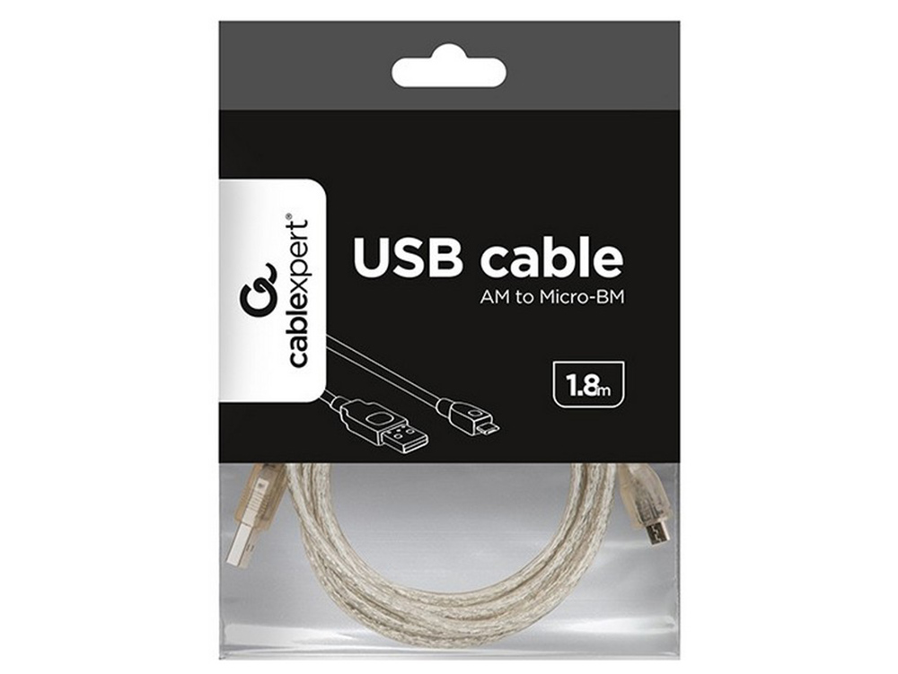 - Кабель для зарядки и синхронизации Cablexpert CCP-mUSB2-AMBM-6-TR, USB Type-A/micro-USB, 1,8м, Прозрачный