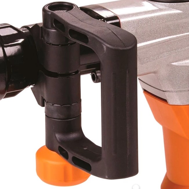 Рукоятка SDS-Max этого перфоратора позволяет быстро и легко менять насадки, а вес 6 кг делает его удобным в управлении, обеспечивая оптимальный баланс между производительностью и контролем. Перфоратор оснащен регулируемой рукояткой, что повышает комфорт при использовании и облегчает маневрирование инструментом.