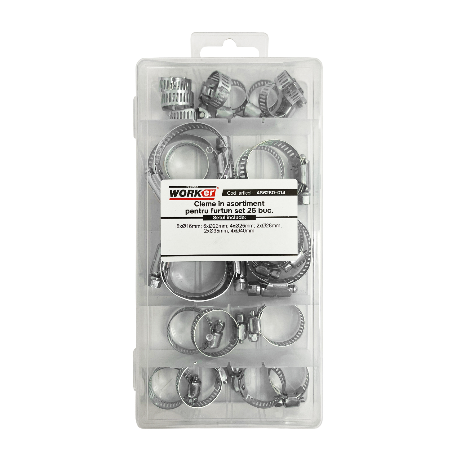 Набор металлических червячных хомутов для шланга 26 шт