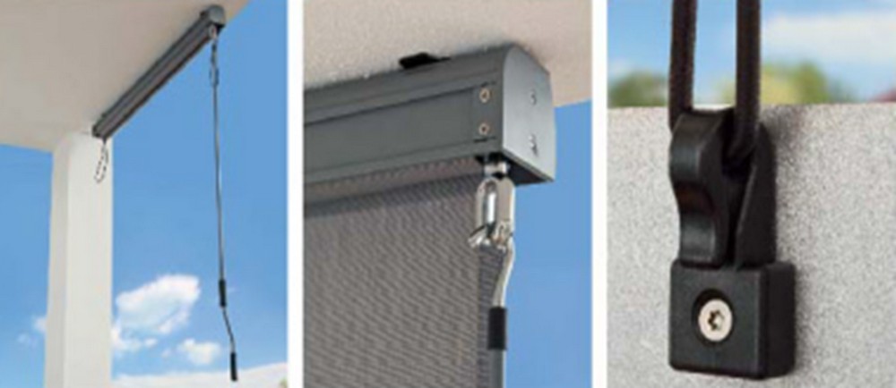 - Бежевый боковой балконный тент