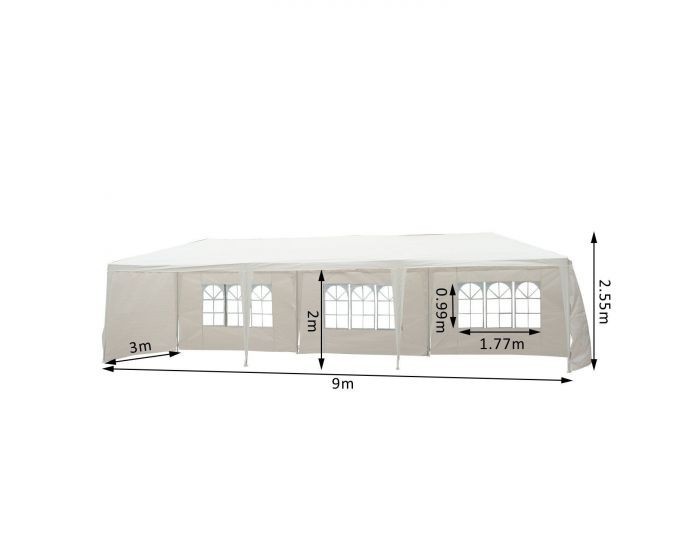 Палатка GAZEBO размером 3x9 метров (белая) — идеальный спутник для комфортного отдыха на свежем воздухе. Этот стильный и удобный шатер обеспечивает лёгкую установку и надёжную защиту от погодных условий, делая его идеальным выбором для пикников, семейных поездок или вечеринок под открытым небом. Просторное внутреннее пространство палатки GAZEBO создаёт уютную атмосферу, где можно наслаждаться времяпрепровождением в кругу близких. Лёгкая и компактная конструкция обеспечивает отличную мобильность и удобство для активного отдыха с друзьями или семьёй.