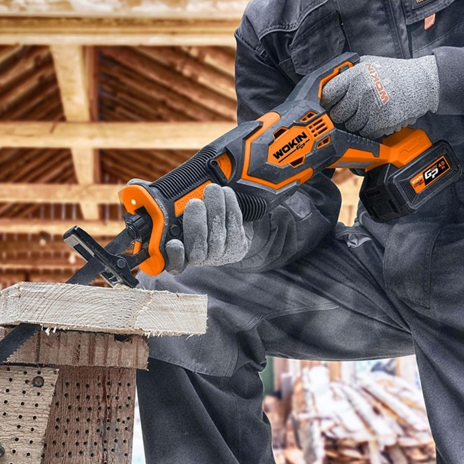 Профессиональная аккумуляторная сабельная пила от фирмы WOKIN служит для распила разнообразных материалов - древесины разной плотности, изделий из пластика, металла, строительных материалов.