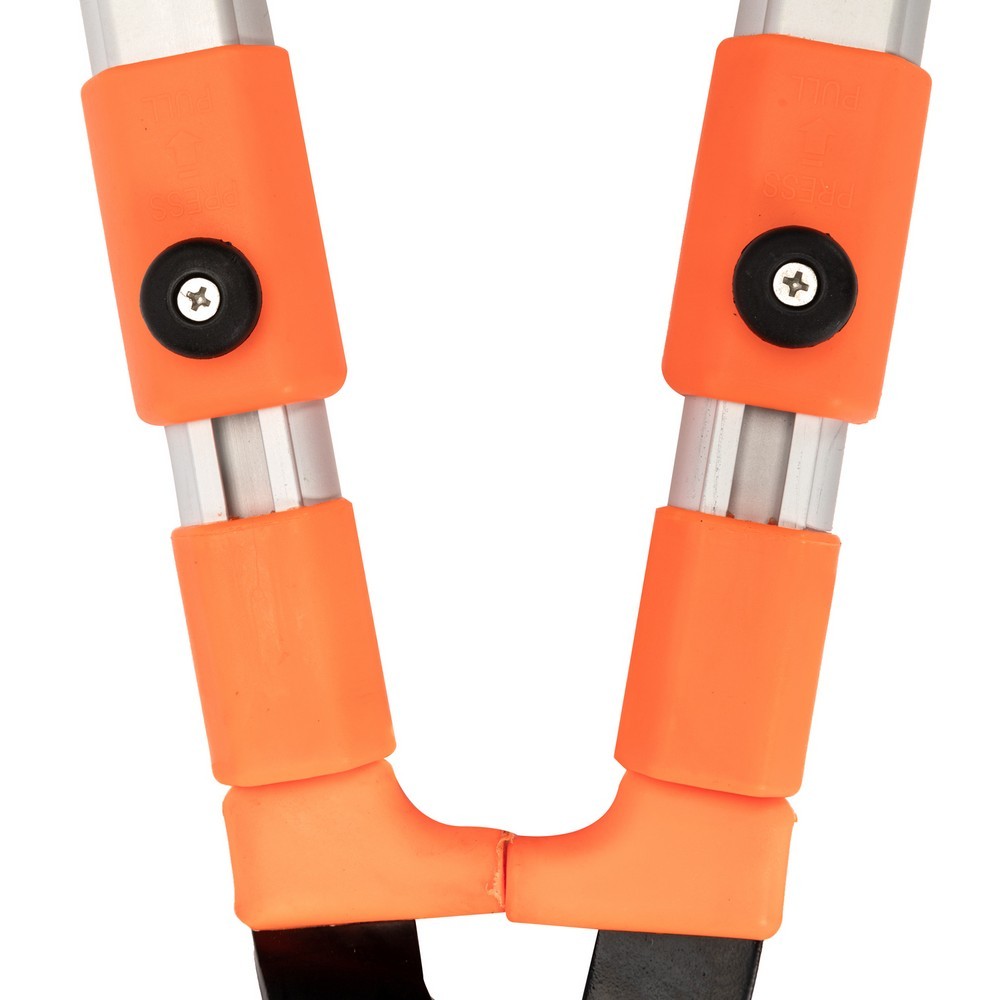 Телескопическая конструкция позволяет удлинять ножницы до максимальной длины 113,5 см, что облегчает доступ к труднодоступным ветвям. В обычном состоянии их длина составляет 85 см, что делает их удобными для различных работ по обрезке. Изготовленные из алюминия, ножницы легкие, но прочные, обеспечивая долговечность и надежность в использовании.
