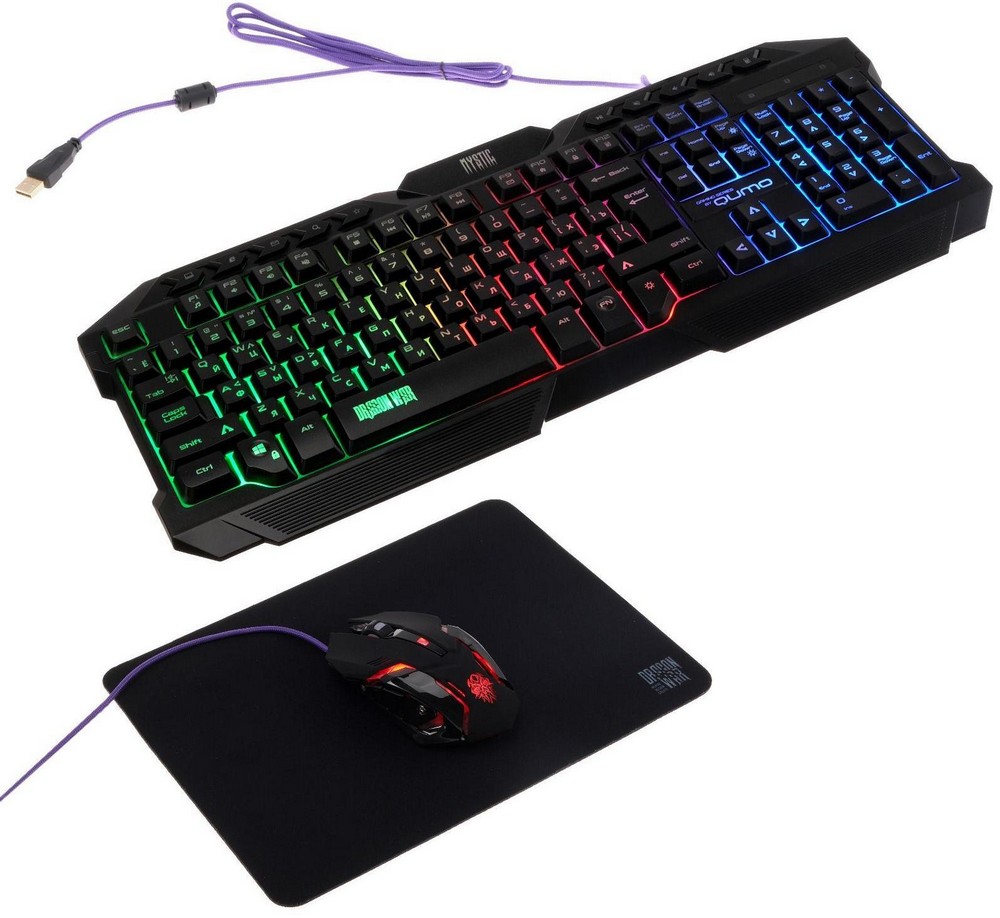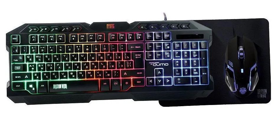 - Клавиатура, мышь и коврик для мыши QUMO Mystic, Проводное, Чёрный