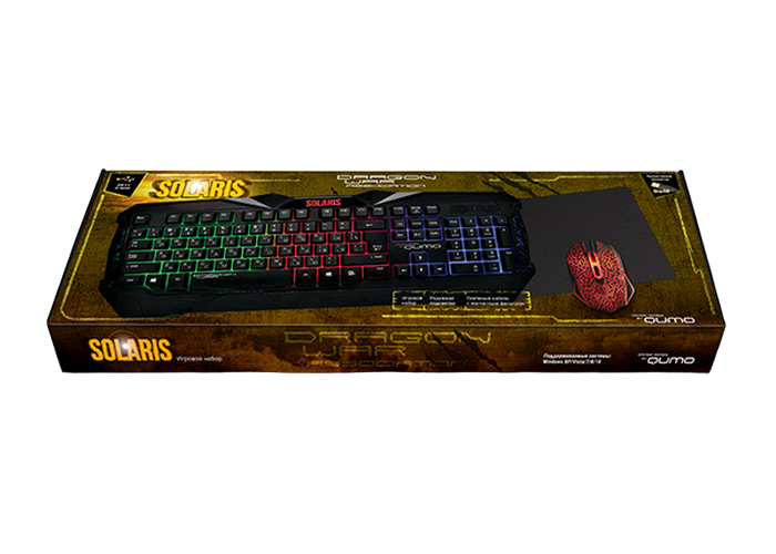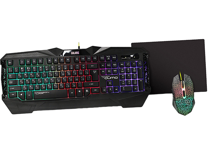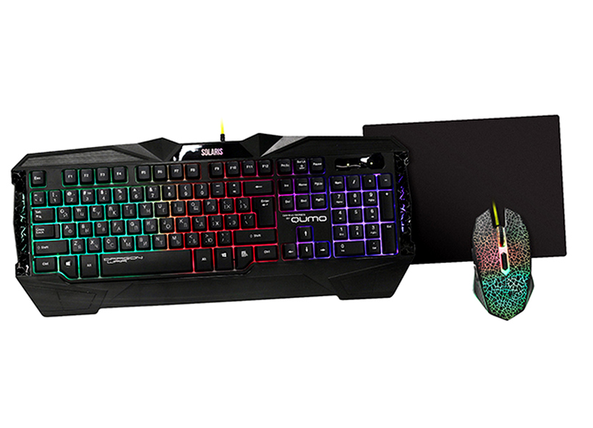 - Клавиатура, мышь и коврик для мыши QUMO Solaris, Проводное, Чёрный