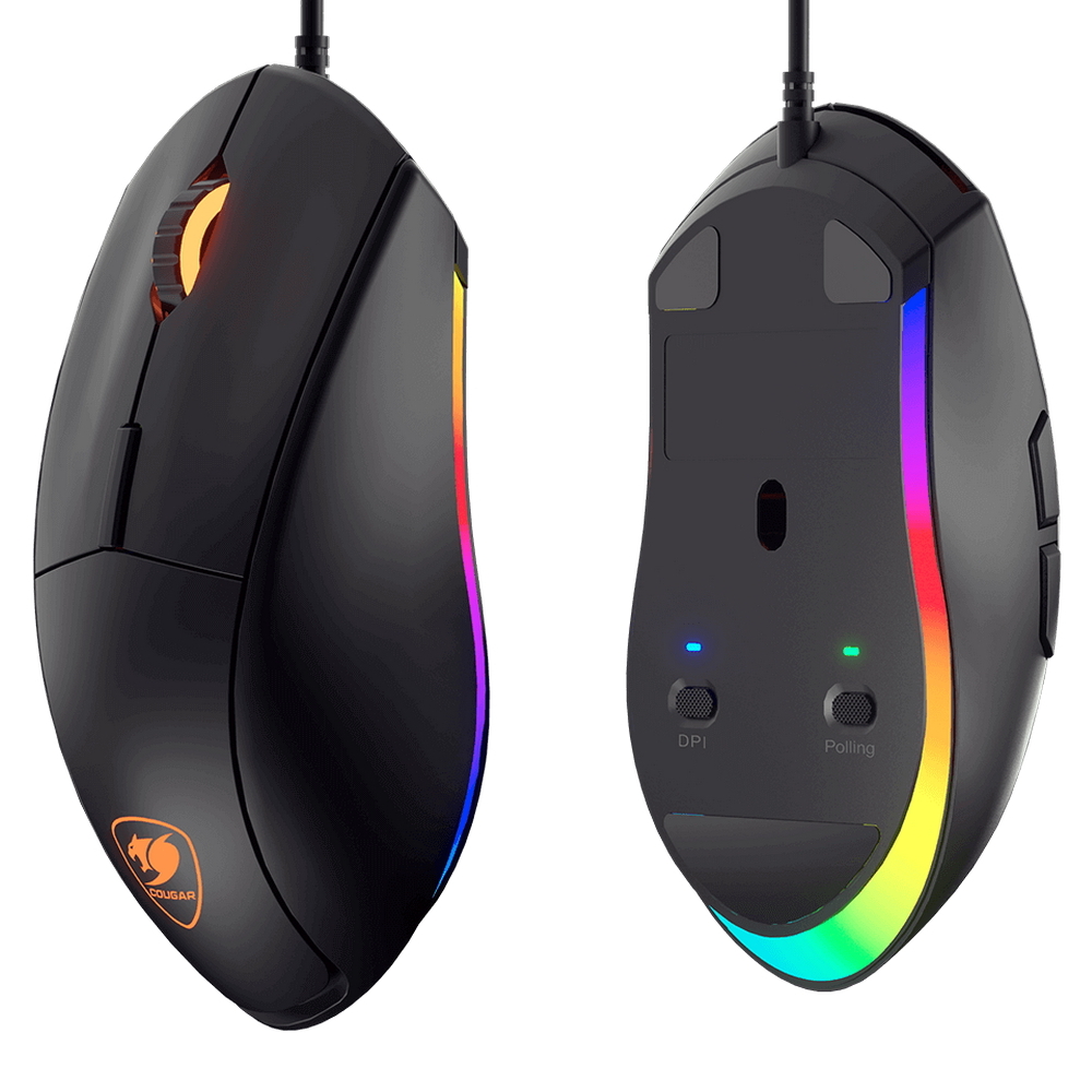 . Product Name COUGAR MINOS XT Gaming Mouse Sensor ADNS-3050 Optical gaming sensor Resolution 4000 DPI Game type FPS / MMORPG / MOBA / RTS Polling Rate 1000Hz On-board Memory 128KB Software COUGAR UIX™ System Programmable Buttons 6 Switching 20M gaming switches Profile LED Backlight 3 zone 16.8 million colors Interface USB plug Cable Length 1.8m Dimension 125(L) x 68(W) x 38(H) mm 4.92(L) X 2.67(W) X 1.49(H) in