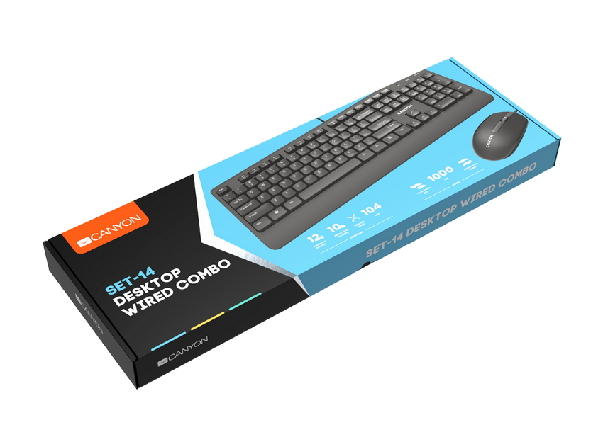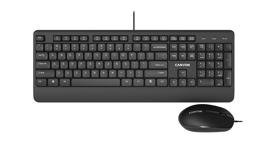 - Клавиатура и мышь Canyon SET-14, Проводное, Чёрный