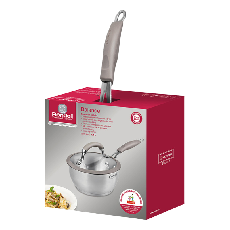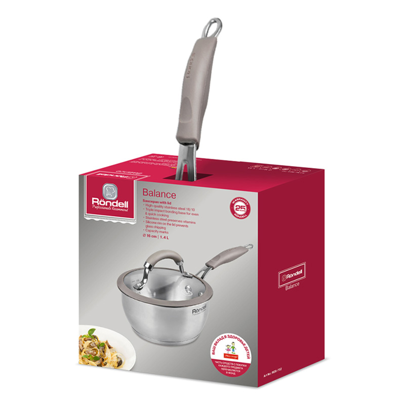 - Ковш Rondell RDS-752, 1,4л, 16см, Нержавеющая сталь