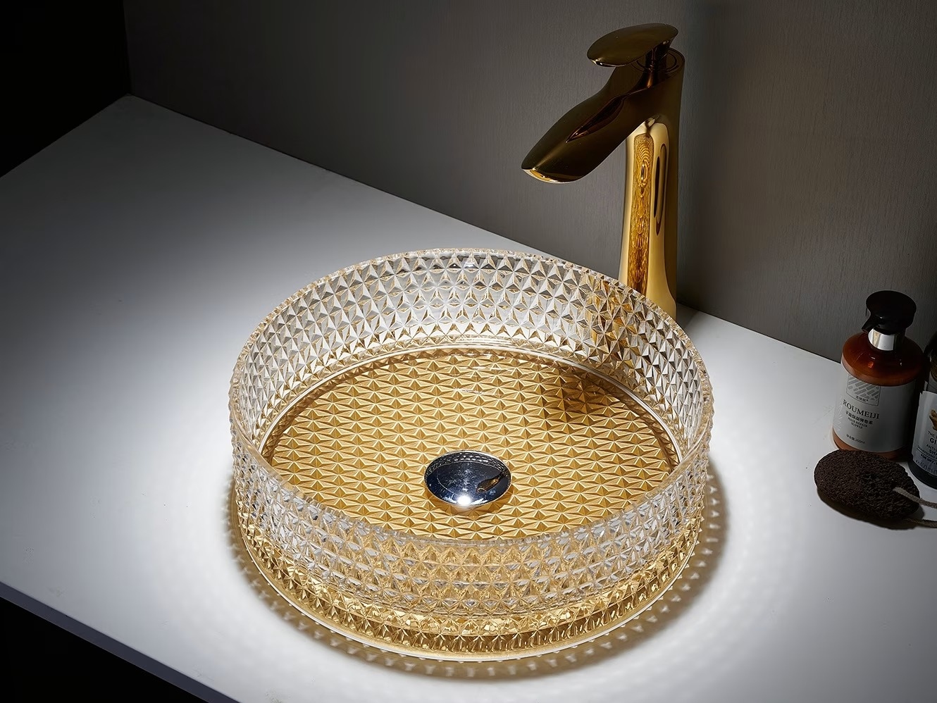 - Раковина из закаленного стекла SanDonna Mira Rotund (Золотистый)