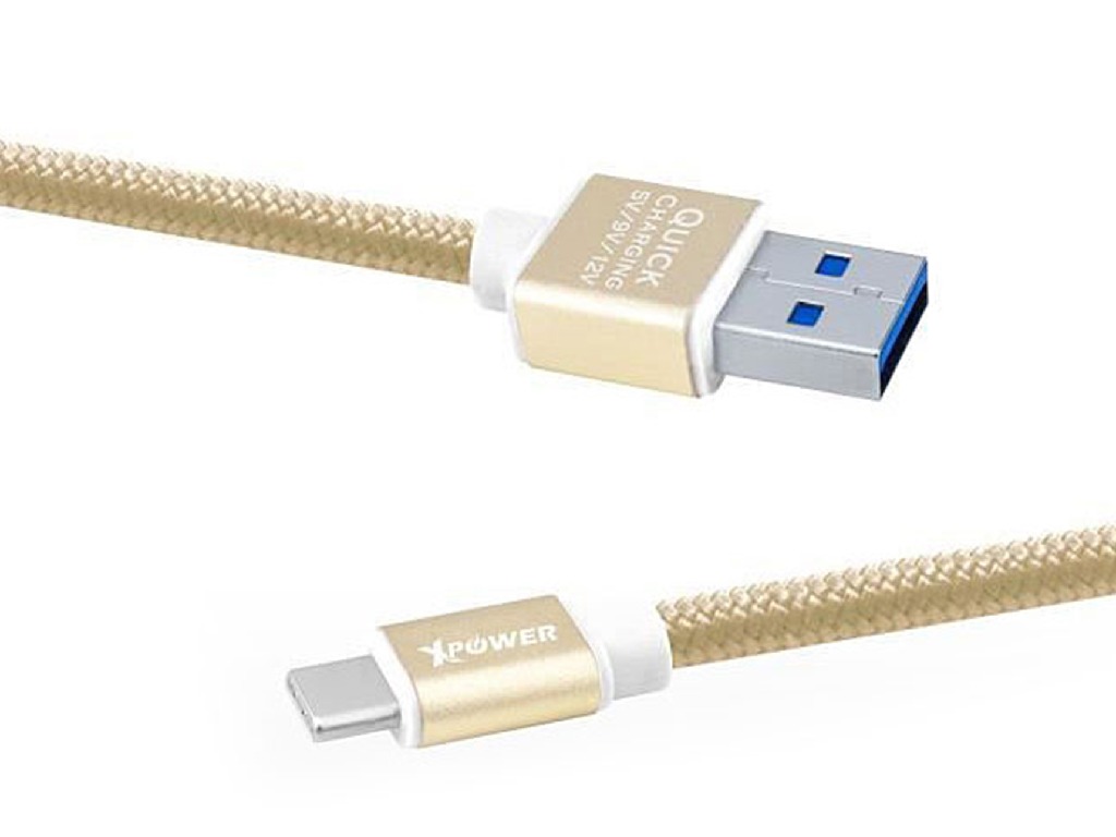 - Кабель для зарядки и синхронизации Xpower Lightning cable Nylon, USB Type-A/Lightning, 1м, Золотистый