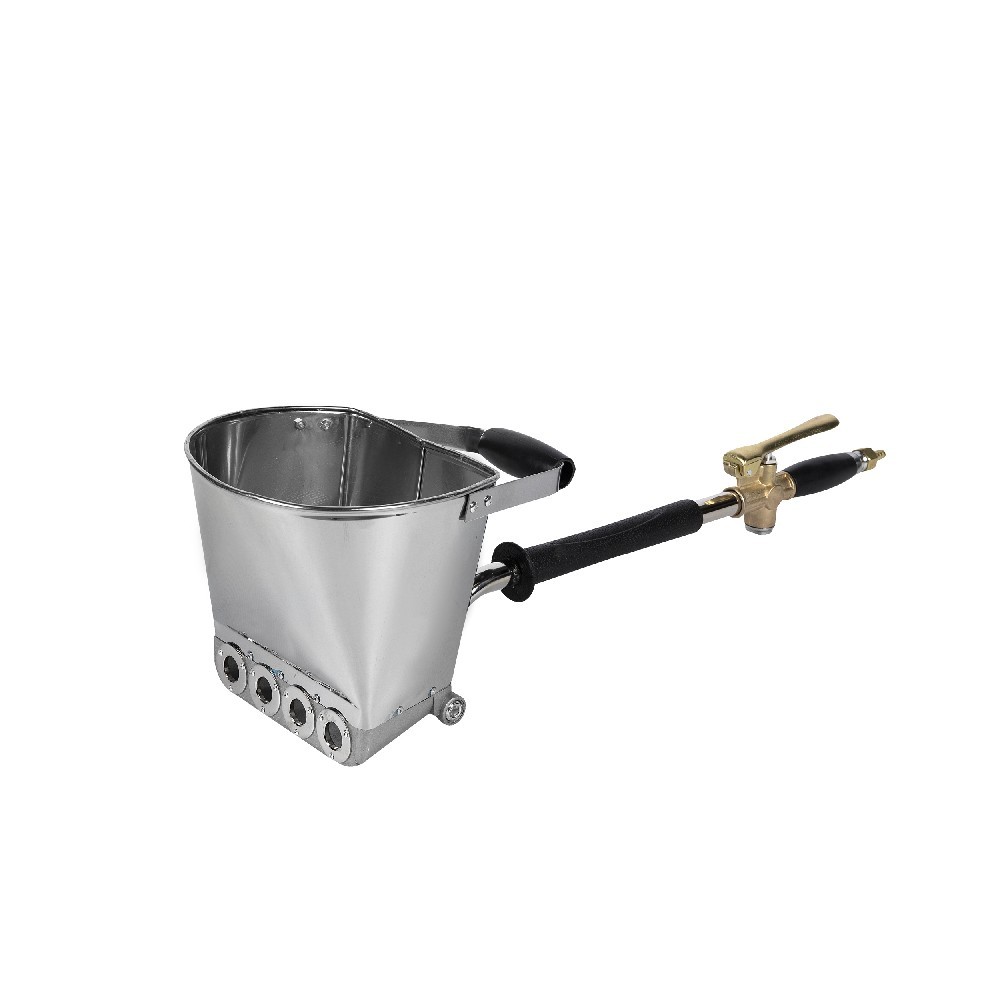 • При работе с однократной форсункой (спиртом, который дается перед штукатуркой) используйте обычный раствор или немного разбавленный 5% водой. Машина не предназначена для работы на «цементном соке». Давление воздуха сможет распылить густой раствор и превратить его в очень мелкие брызги (рисовые зерна). Таким образом, распыляемый с помощью насадки раствор будет очень сильно проникать в поры кирпича/бца и образовывать на стене абразивный слой для идеального и прочного сцепления;