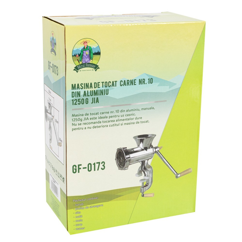 Masina de tocat carne nr.10, aluminiu, 1250g, JIA, Micul Fermier GF-0173 contine: