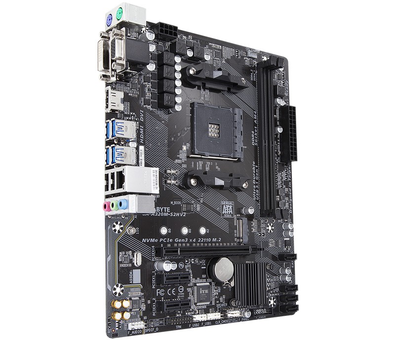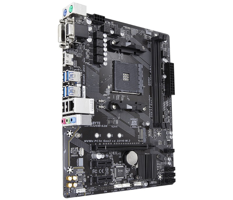 - Материнская плата Gigabyte GA-A320M-S2H 1.1-3.0, AM4, AMD A320, Micro-ATX