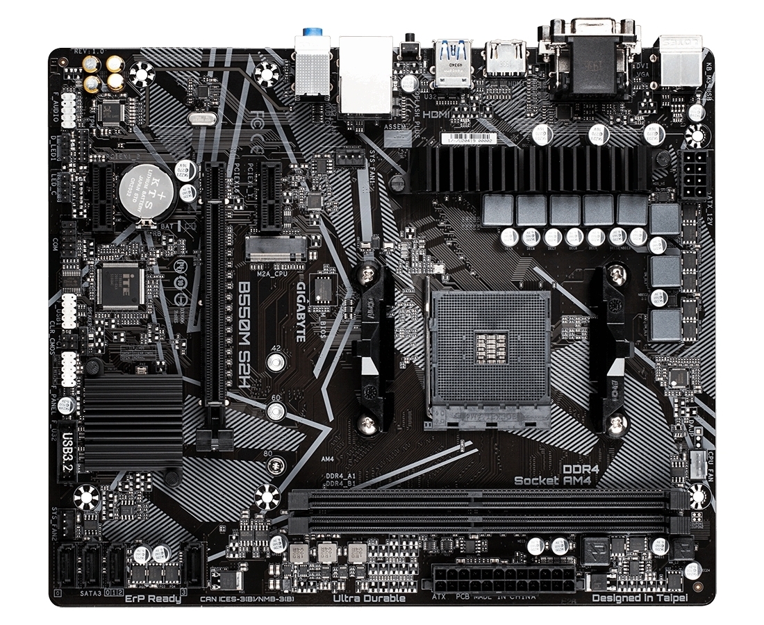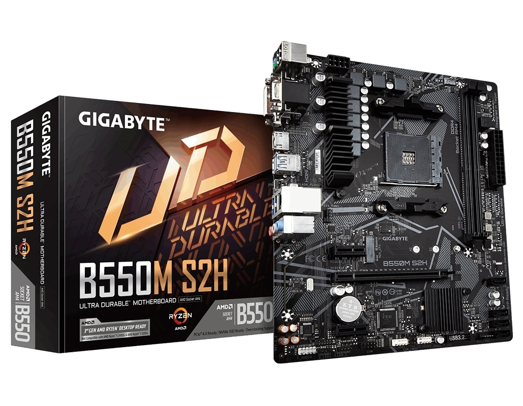 - Материнская плата Gigabyte B550M S2H, AM4, AMD B550, Micro-ATX