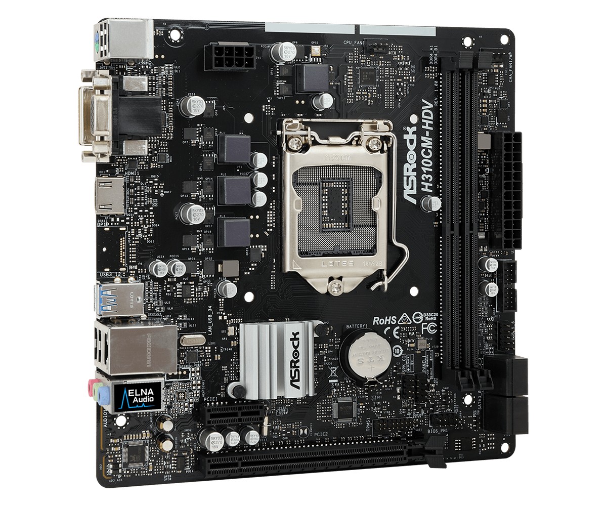 - Материнская плата ASRock H310CM-HDV, LGA1151, Intel H310, Micro-ATX