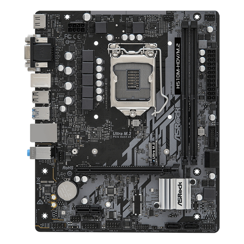 - Материнская плата ASRock H510M-HDV/M.2, LGA1200, Intel H510, Micro-ATX