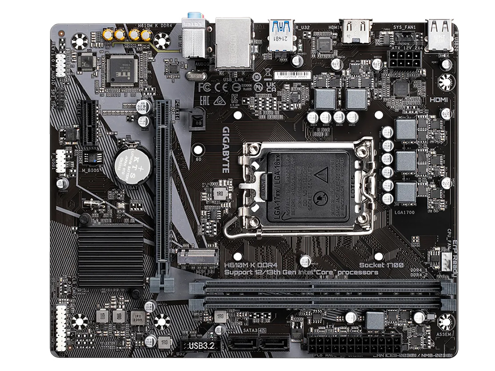 - Материнская плата Gigabyte H610M K DDR4, LGA1700, Intel H610, Micro-ATX
