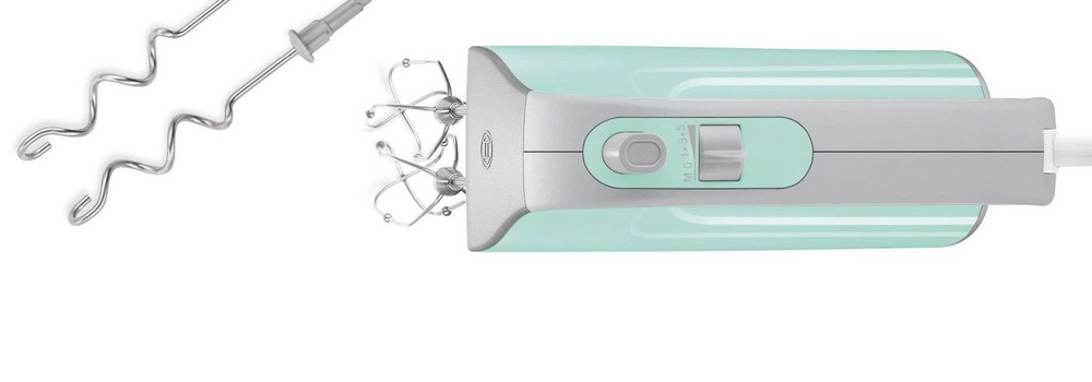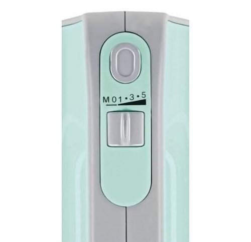 , 500W power output, 5 speed levels plus pulse level, 2x dough hook, 2x beater, turquoise