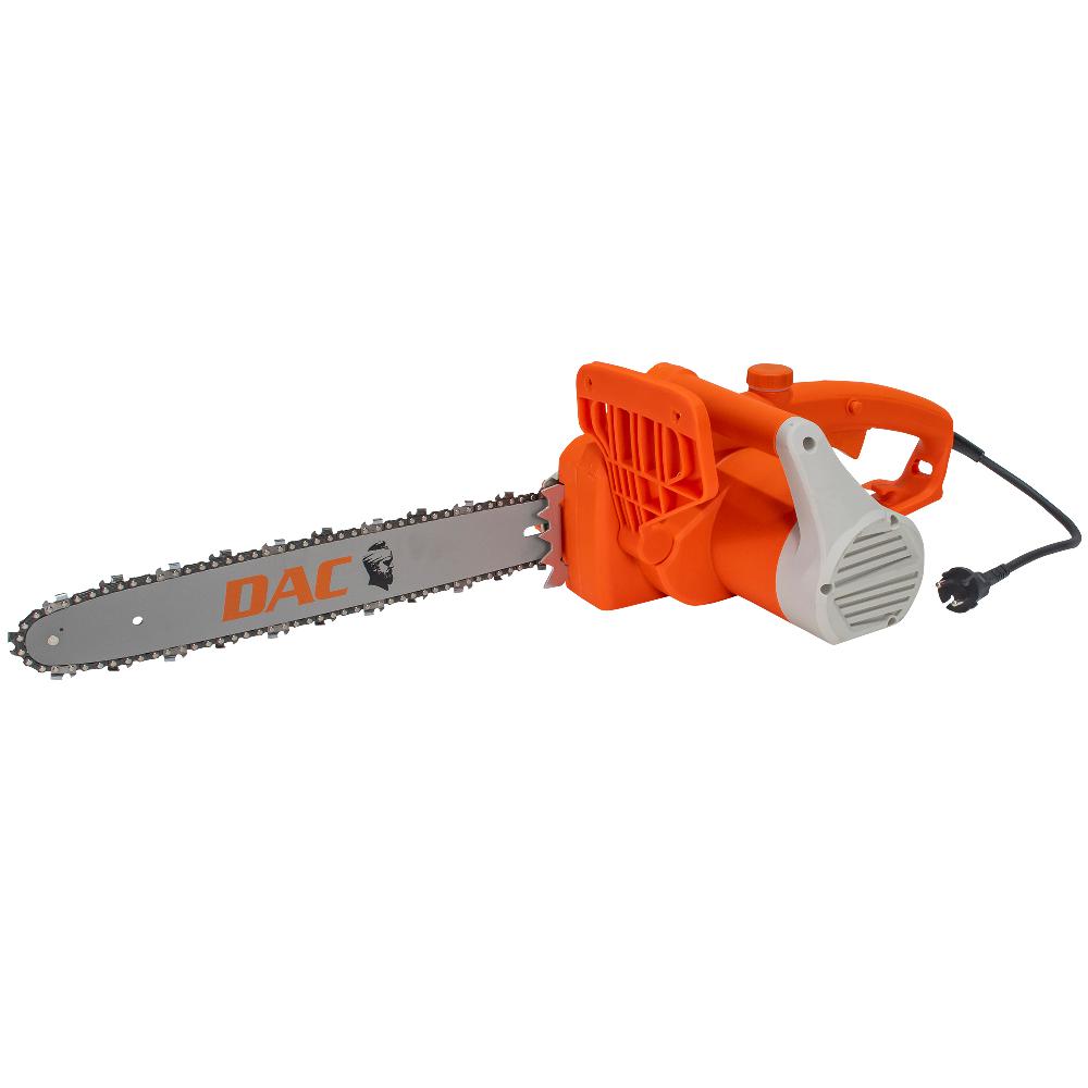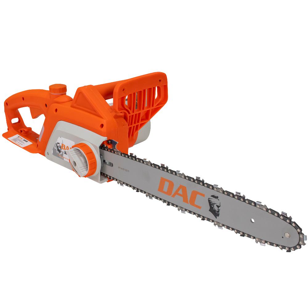 Бензопила DAC 322E специально разработана для строительных работ или для деревообрабатывающих мастерских. Благодаря малому шуму и отсутствию шума его можно использовать в закрытых помещениях. Бензопила имеет большое применение в домашнем хозяйстве, где необходимо заготовить дрова для костра. Бензопила DAC 322E питается от сети 220 В и имеет мощность 2200 Вт. В стандартной комплектации шасси оснащено устройством тормоза цепи для аварийной остановки или блокировки цепи в случае явления отдачи при контакте с деревянной поверхностью.