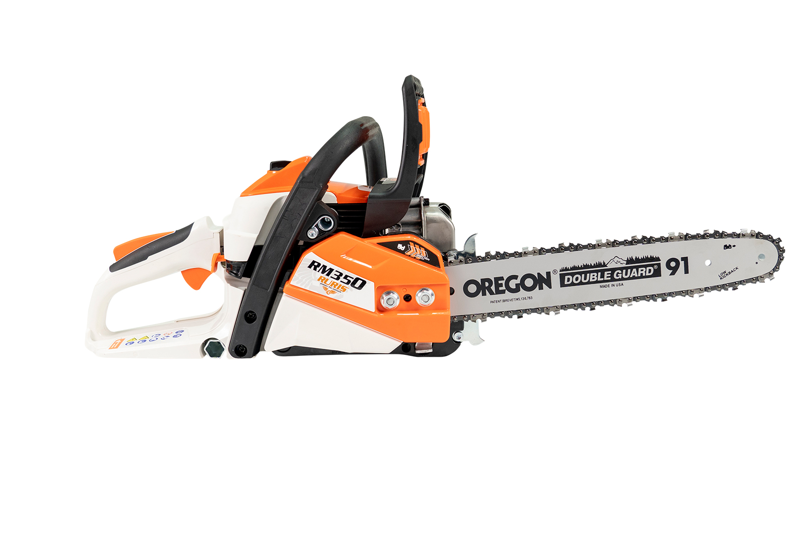 Надежная и простая в обращении бензопила RURIS RM350 с двигателем мощностью 2 л.с. подходит для валки деревьев малого и среднего размера, для расчистки веток и сложных работ по уходу за деревьями, а также для заготовки дров. Новый дизайн машины и ряд инновационных функций обеспечивают эффективную, надежную и комфортную работу. • Особенности: Оборудованная профессиональной рейкой Oregon и карбюратором Walbro, бензопила RURIS RM350 обеспечивает идеальное сочетание повышенной эффективности и оптимальной эргономики, превращая любую задачу в легкую задачу. • Простота в обращении: Бензопила RURIS RM350 проста в обращении и может легко использоваться в домашнем хозяйстве для выполнения простых работ. • Новый дизайн: Бензопила RURIS RM350 имеет новый дизайн и технологические решения для эффективной и удобной работы. • Используется для различных работ: Бензопила RURIS RM350 относится к категории бензопил средней мощности и может использоваться для различных целей. Подходит для прореживания деревьев, строительства и заготовки дров. Легкий вес и высокая мощность в сочетании с надежным двигателем делают эту бензопилу подходящей для широкого спектра работ. • Легкий запуск: Система запуска бензопилы RURIS RM350 достигается простым натяжением шнура, когда двигатель предварительно включен. • Малый вес: Благодаря небольшому весу, всего 4,65 кг, резка древесины с помощью бензопилы RURIS RM350 становится комфортной и может выполняться в течение более длительного периода времени. Бензопила RURIS RM350 также подойдет тем, кто ищет машину, которую легко запустить и использовать. Небольшой вес позволяет использовать в течение дня. • Расход топлива: Бензопила RURIS RM350 оснащена оборудованием, обеспечивающим адекватный уровень загрязнения окружающей среды. Низкий расход топлива является результатом способности бензопилы совершать быстрые обороты, к которым добавлена направляющая и производительная цепь 3/8 1,3 PM RURIS.