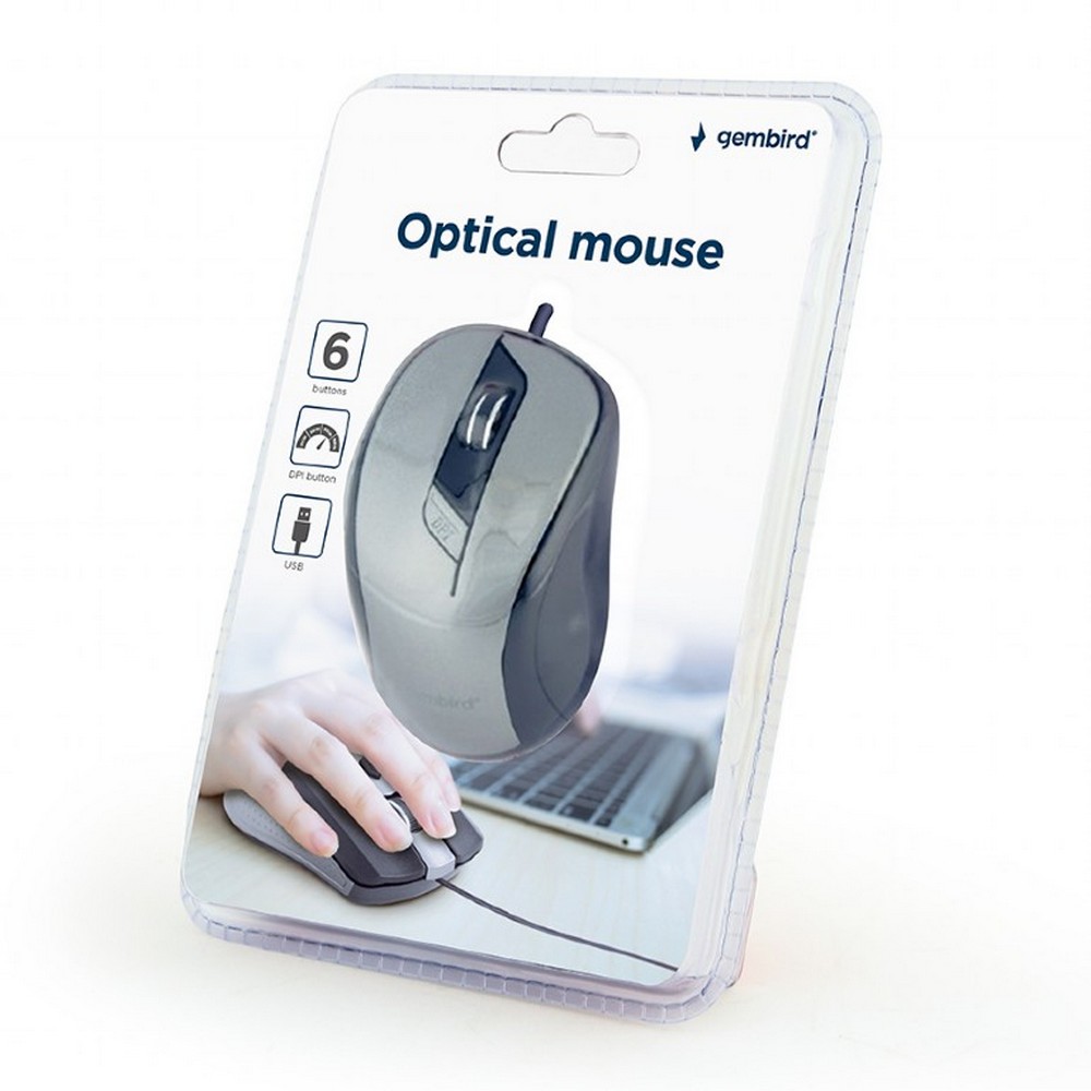 - Мышь Gembird MUS-6B-01-BG, Чёрный/Серый
