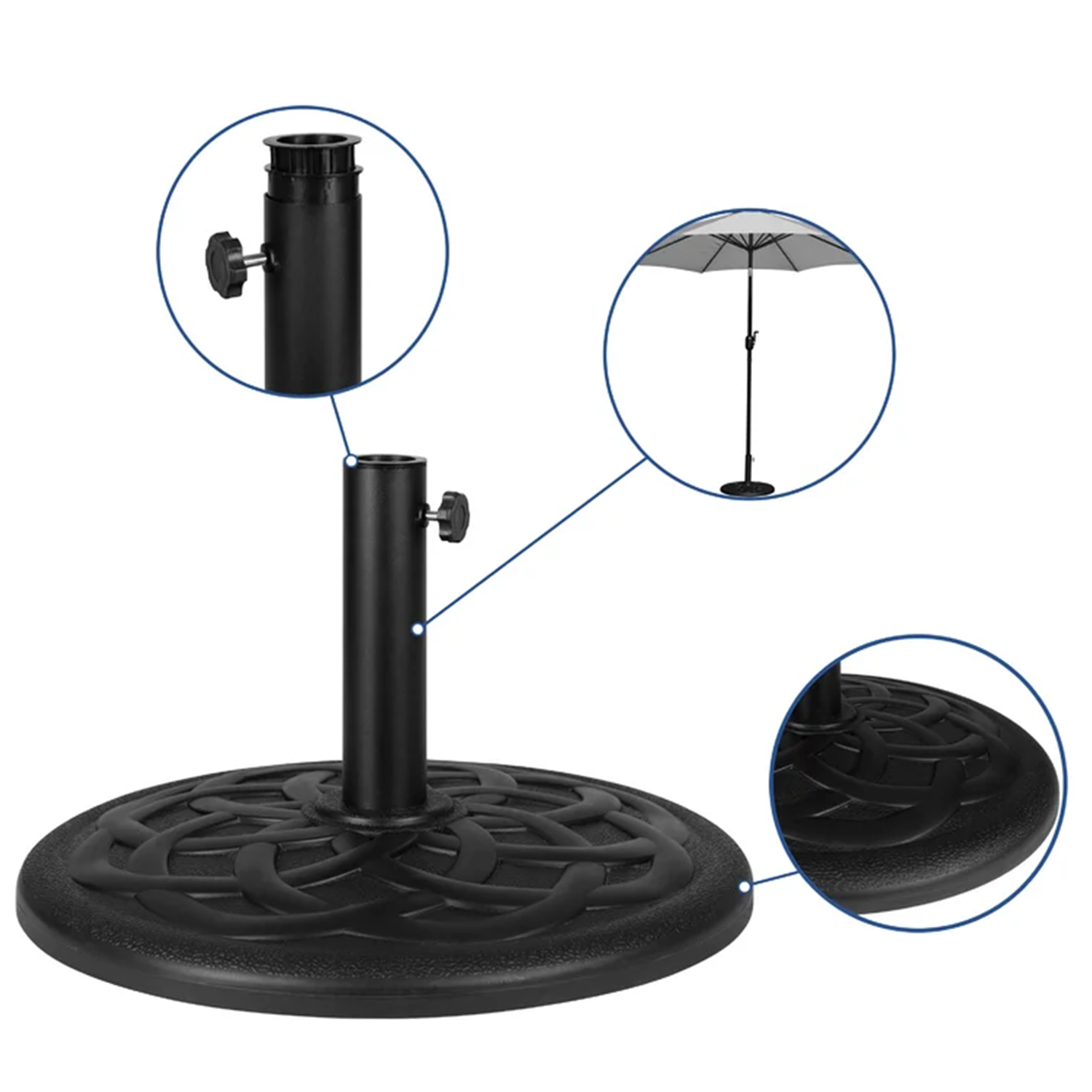 Стойка для зонта диаметром 48 см представляет собой практичное и надёжное решение для установки зонтов в различных условиях. Он имеет круглую форму и размеры 48x48 см, идеально подходящие для садовых и террасных зонтов. Общая высота составляет 31 см, обеспечивая прочную и стабильную основу для зонтов. Держатель выполнен в элегантном черном цвете, что позволяет ему гармонично вписываться в любой интерьер. Изготовлен из прочного пластика и цемента, обеспечивая высокую устойчивость и долговечность. Весит 19 кг, что обеспечивает стабильность и надёжность даже ветреной погоде и разнообразных климатических условиях. Выберите идеальный держатель для зонта для вашего открытого пространства и наслаждайтесь комфортом каждый день.