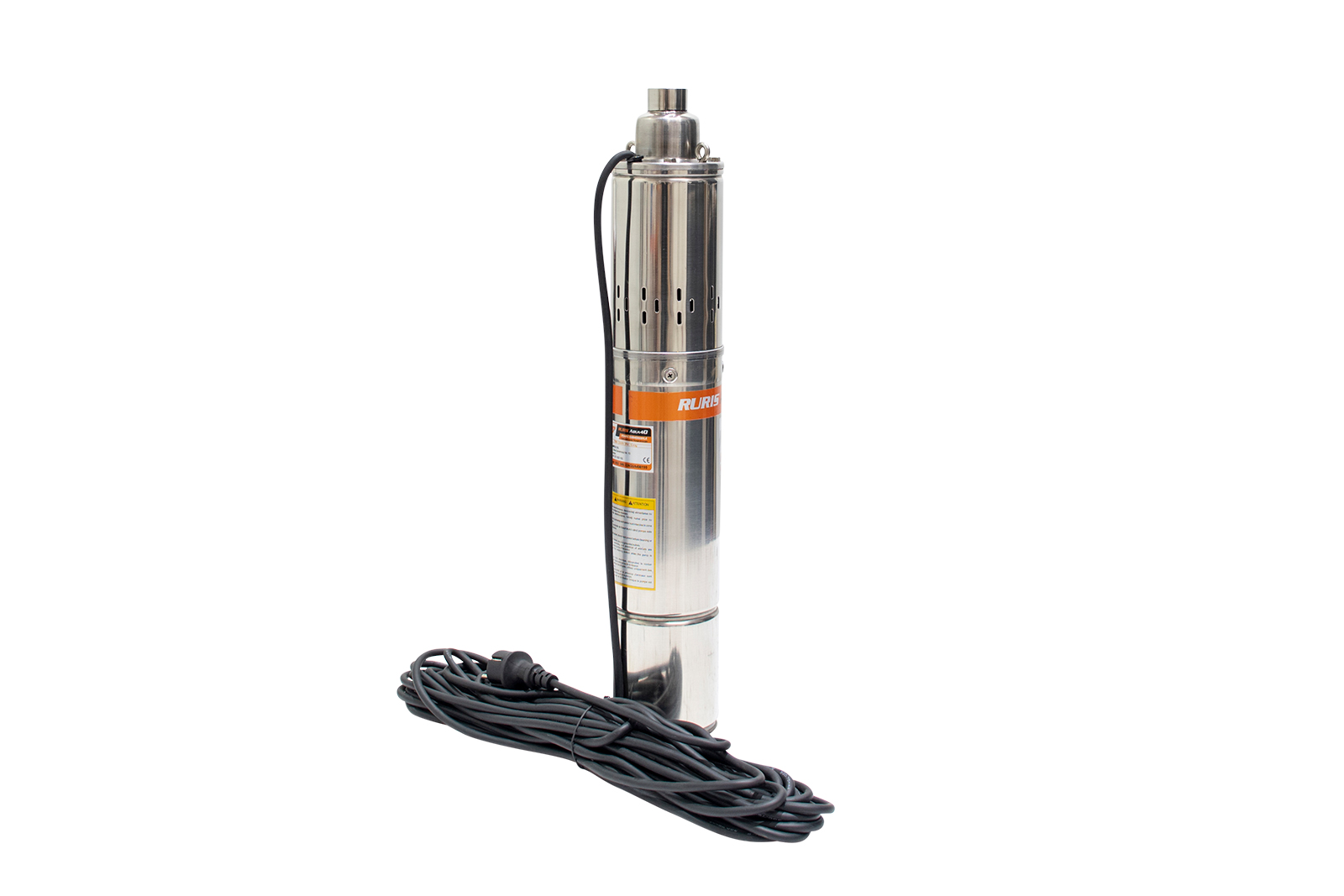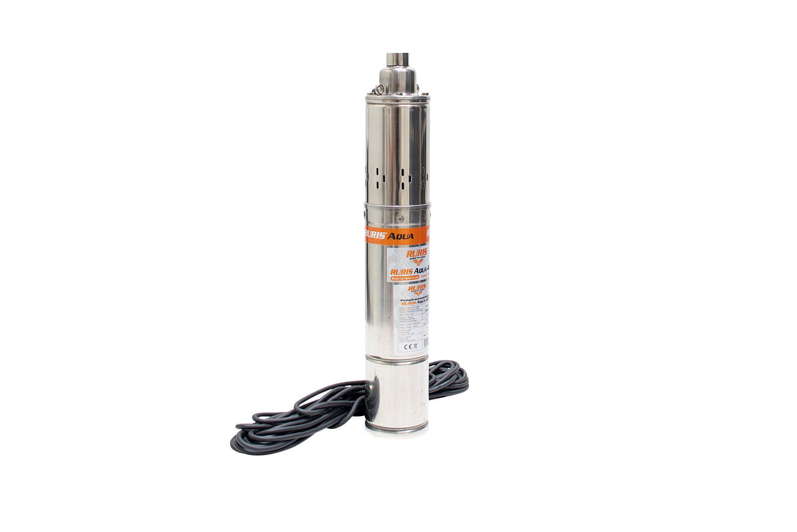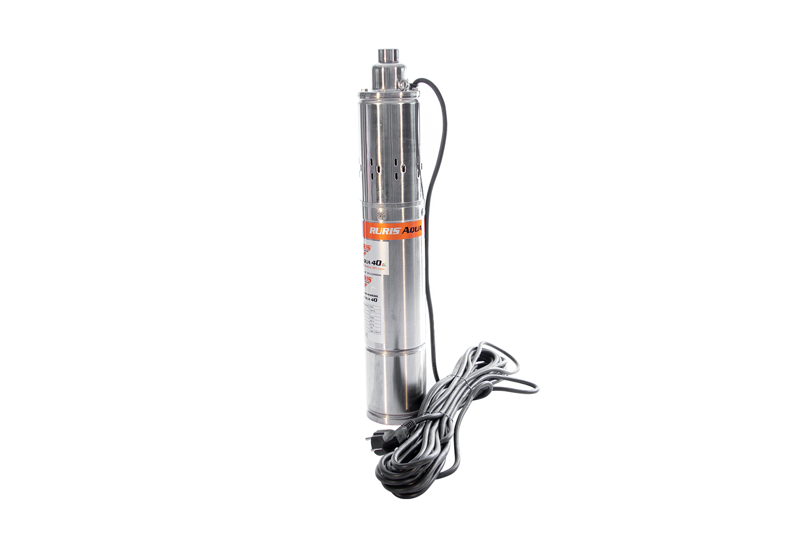 Pompa submersibilă RURIS Aqua 40 este o pompă de adâncime folosită pentru alimentarea cu apă curată a gospodăriilor sau diverşilor consumatori precum instalaţiile de irigat. Apa poate fi pompată din fântâni sau puţuri de la o adâncime de până la 100m. Motorul pompei este de 750W cu bobinaj 100% din cupru, iar construcţia pompei este de tip şurub.