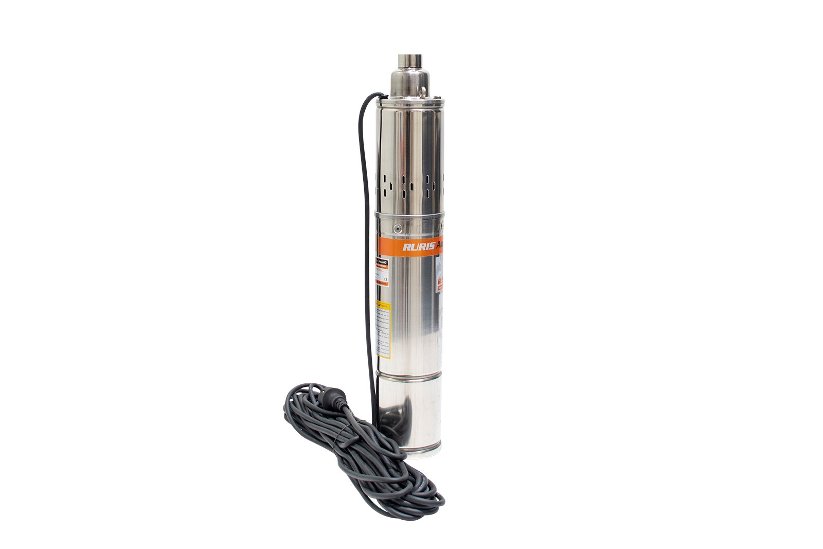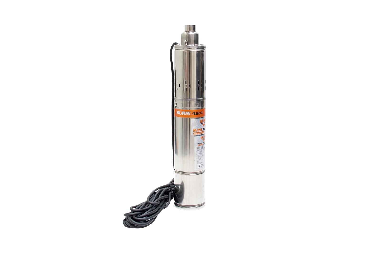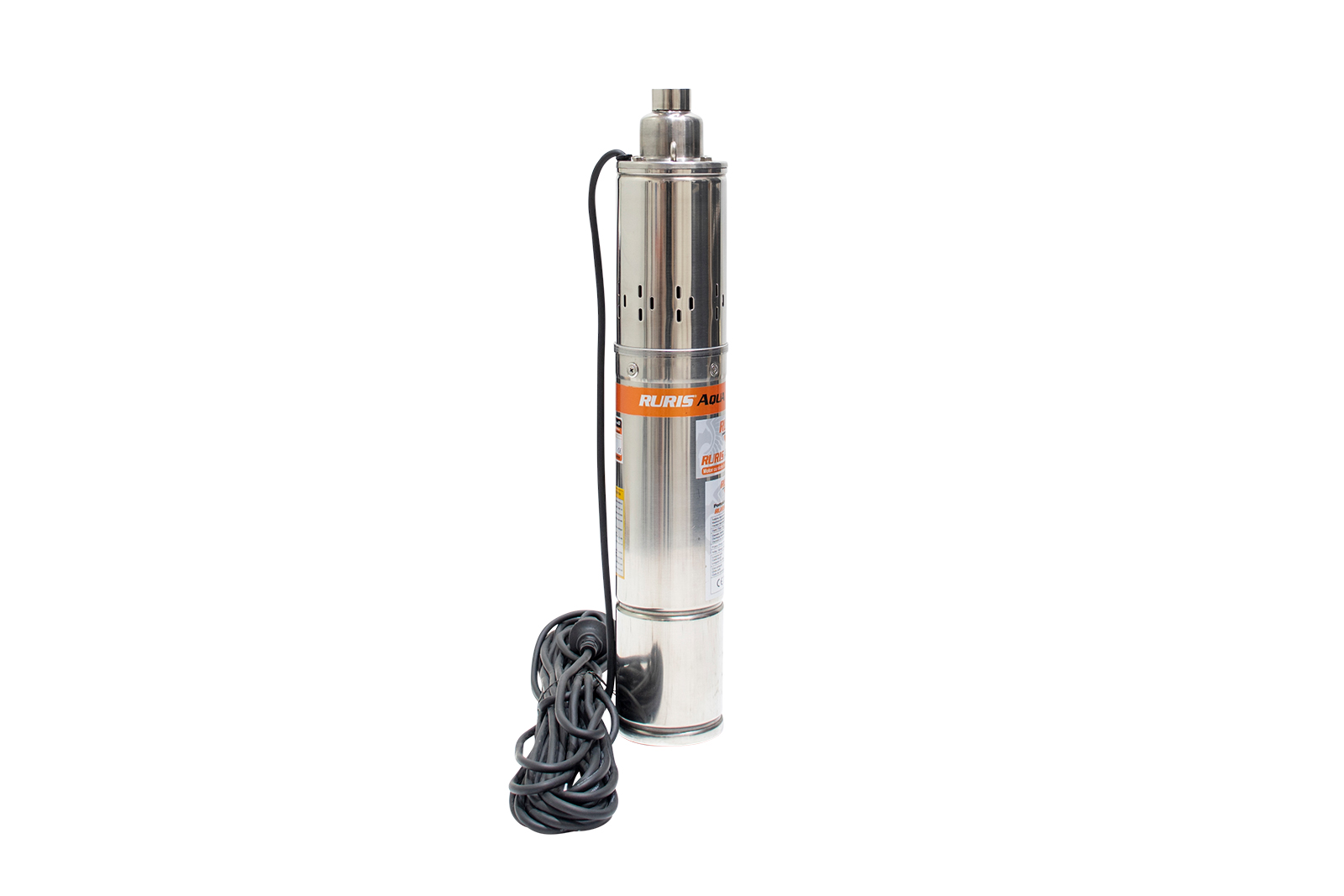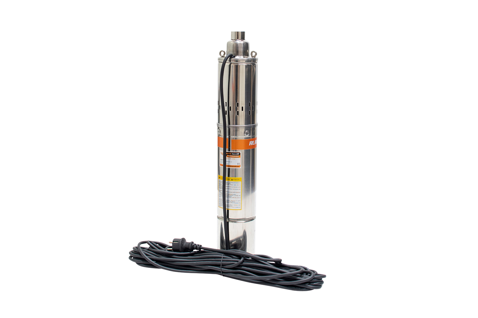 Pompa submersibilă RURIS Aqua 40 este o pompă de adâncime folosită pentru alimentarea cu apă curată a gospodăriilor sau diverşilor consumatori precum instalaţiile de irigat. Apa poate fi pompată din fântâni sau puţuri de la o adâncime de până la 100m. Motorul pompei este de 750W cu bobinaj 100% din cupru, iar construcţia pompei este de tip şurub.