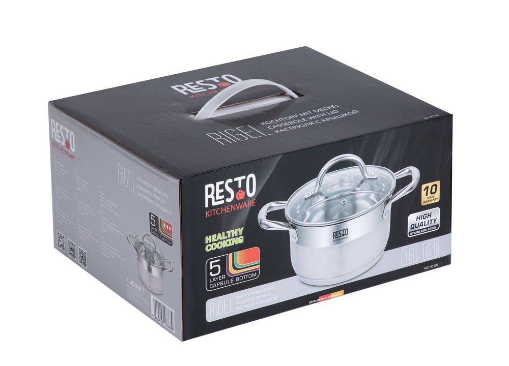 - Кастрюля RESTO 92104, 3,6л, Нержавеющая сталь