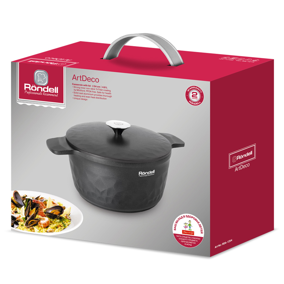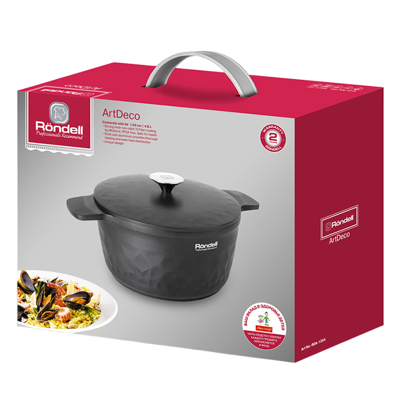 - Кастрюля Rondell ArtDeco, 4,8л, Чёрный