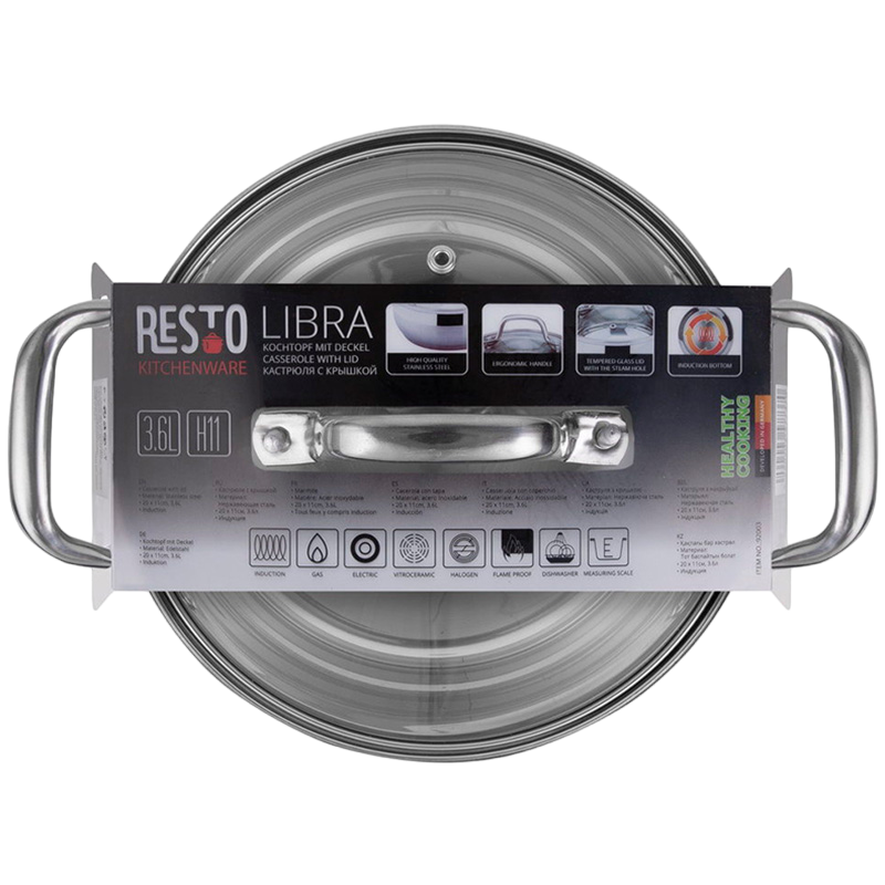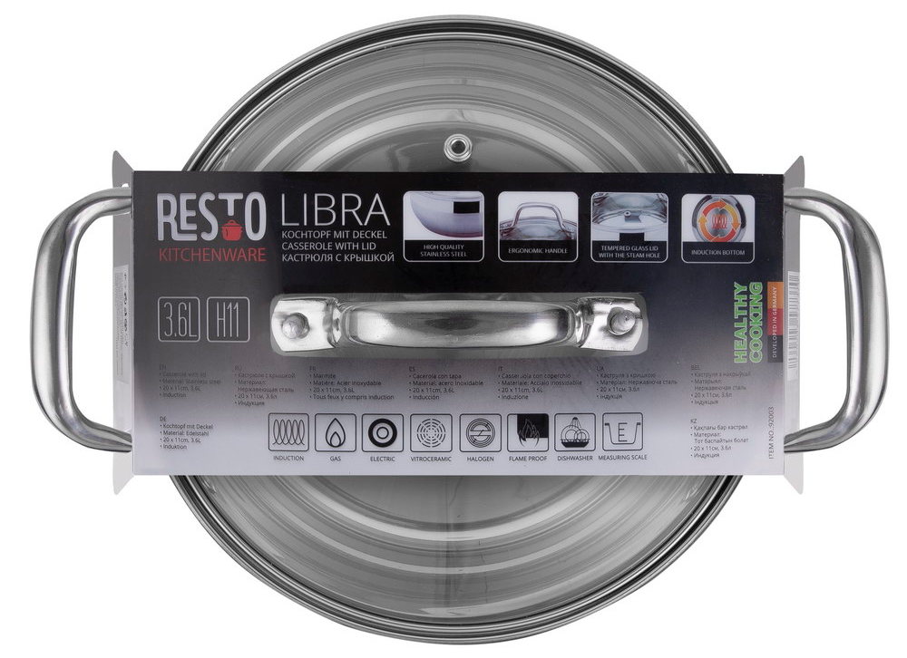 - Кастрюля RESTO 92003, 3,6л, 20см, Нержавеющая сталь