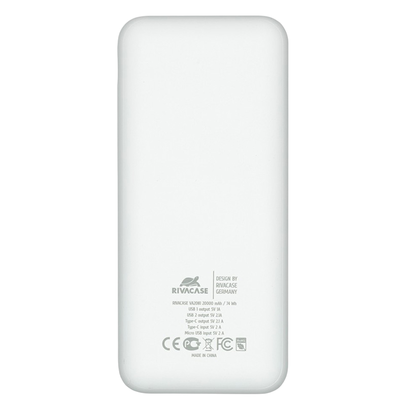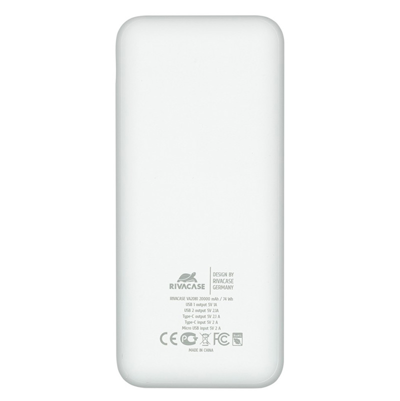 - Портативное зарядное устройство RivaCase VA2081, 20000мА·ч, Белый