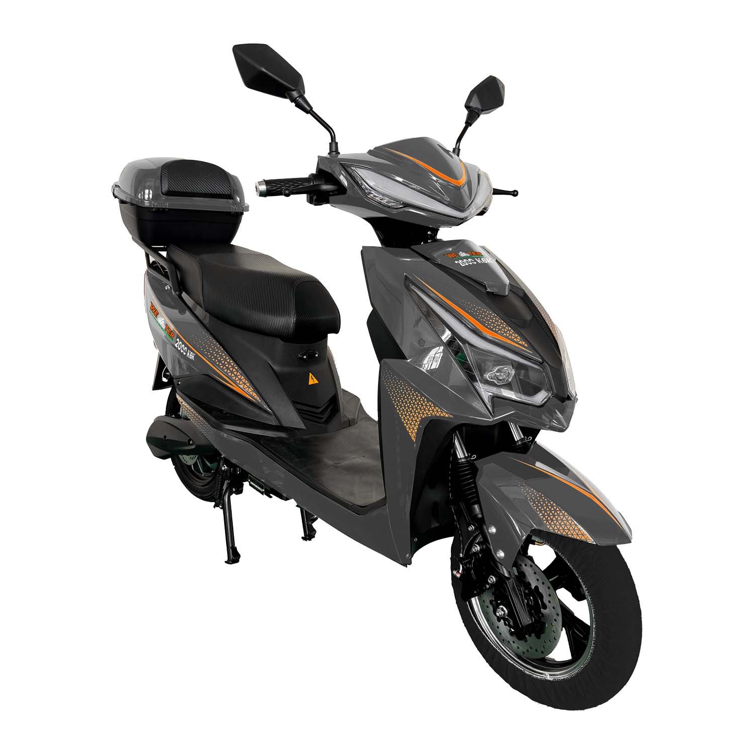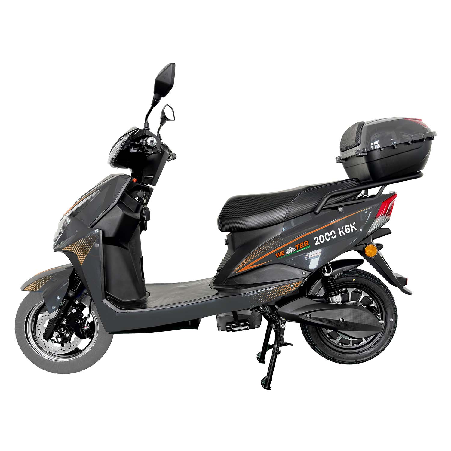 Электроскутер WETER 2000 K6K — это современное, эффективное и удобное средство передвижения, идеально подходящее для городских поездок. Оснащён мощным двигателем 72V 2000W, он обеспечивает уверенное ускорение и комфортное вождение. Свинцово-кислотный аккумулятор 72V 20AH гарантирует хорошую автономность для ежедневных маршрутов. Максимальная скорость достигает 55 км/ч, при этом предусмотрено ограничение до 45 км/ч для повышения безопасности. Гидравлические дисковые тормоза спереди и сзади обеспечивают надёжное и быстрое торможение. Переднее колесо выполнено из алюминия, что придаёт скутеру прочность и элегантный вид. Устройство оснащено автоматической коробкой передач с функцией парковки (режим "P"). Функция «ремонт в один клик» упрощает базовое техническое обслуживание. Сзади предусмотрен вместительный багажный ящик для покупок или личных вещей. USB-разъём позволяет заряжать мобильные устройства во время поездки. Встроенная противоугонная сигнализация обеспечивает дополнительную защиту. Три режима скорости позволяют адаптировать движение под разные условия и предпочтения. Для комфорта в дороге предусмотрен Bluetooth-плеер. Сухой вес устройства составляет 107 кг, а полный — 127 кг, что обеспечивает устойчивость на дороге. WETER 2000 K6K — отличный выбор для тех, кто ищет экономичный, стильный и экологичный транспорт.