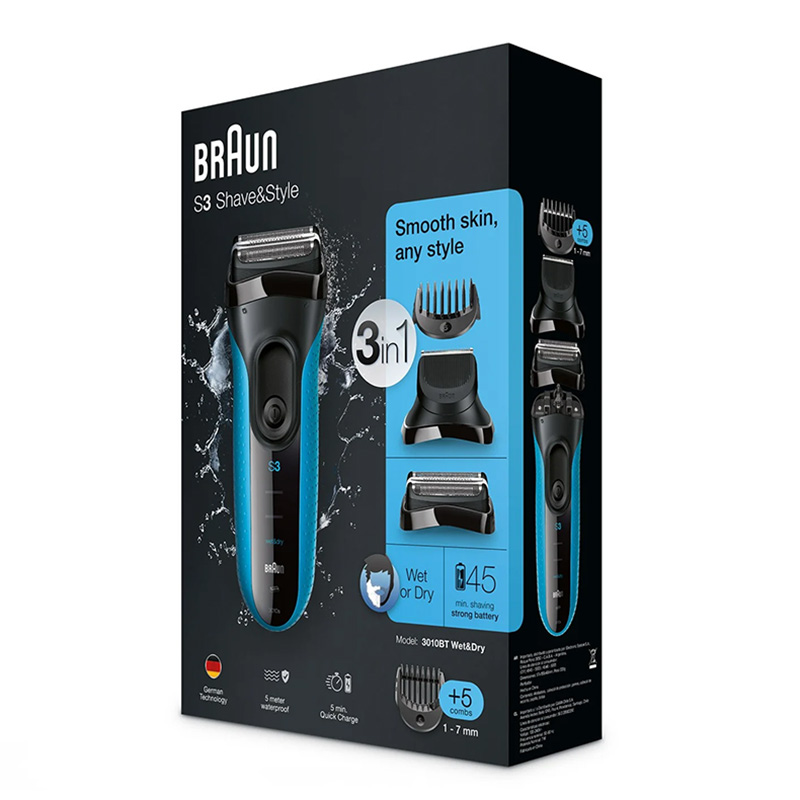 - Электробритва мужская Braun 3010 BT WD, Синий