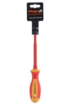 Отвертка VDE Villager идеально подходит для электромонтажных работ, имея защитную рукоятку, выдерживающую электрический разряд в 1000 вольт.