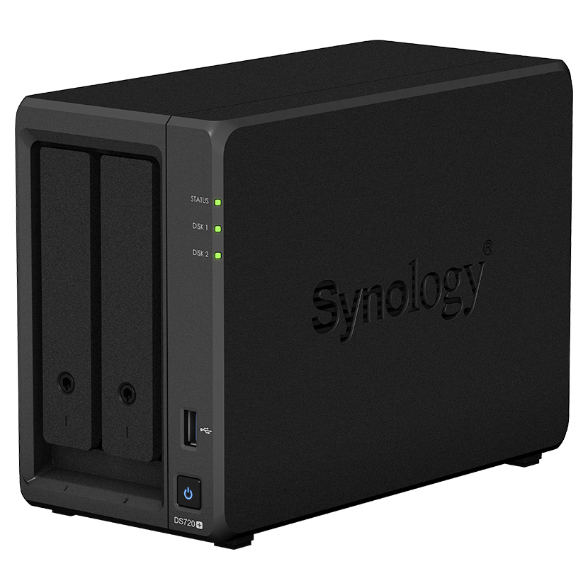 SYNOLOGY "DS720+", 2-bay, Intel Celeron 4-core 2-2.7Ghz, 2Gb+1Slot, 2x1GbE, 2xM.2 NVMe