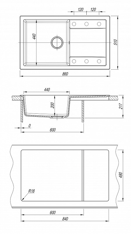 - Кухонная мойка из камня Dr.Gans Tehno 860х510х217 серый