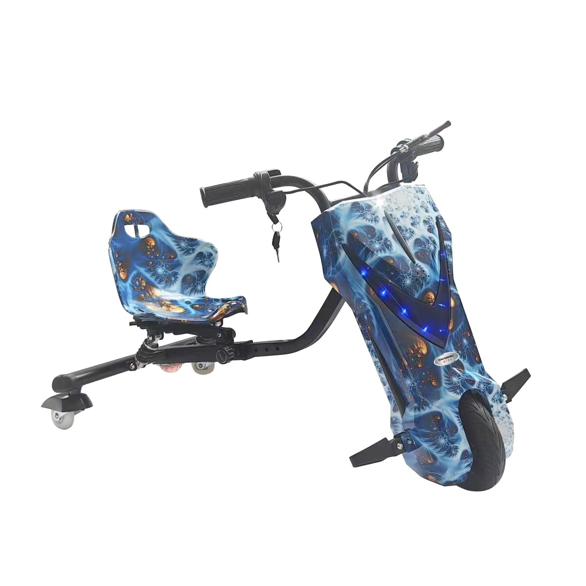 Электрический трицикл для детей HAUSBERG 250W 36V — отличный выбор для маленьких любителей приключений. Благодаря мощному двигателю 250 Вт и литий-ионной батарее 36V, 4400 mAh, трицикл демонстрирует отличные характеристики. Время полной зарядки составляет всего 3–4 часа, что позволяет быстро подготовить его к новым поездкам. Максимальная скорость достигает 15 км/ч, а запас хода на одной зарядке — от 10 до 15 км, что обеспечивает длительные и увлекательные прогулки. Трицикл оснащён тремя уровнями скорости, которые можно настроить в зависимости от опыта ребёнка. Запуск с помощью ключа добавляет дополнительный уровень безопасности. Регулируемое сиденье и высота руля обеспечивают максимальный комфорт и эргономику. Подвеска, звуковой сигнал, световые указатели и лазерная подсветка сзади гарантируют хорошую видимость и безопасность в любое время. Светодиодные колёса спереди придают модели современный вид и улучшают заметность. Цифровой дисплей отображает уровень заряда батареи и текущую скорость, позволяя ребёнку всегда быть в курсе состояния транспорта. Трицикл рекомендуется для детей старше 8 лет и выдерживает нагрузку до 80 кг. В комплект входят защитный шлем и набор наколенников для максимальной безопасности. Современный дизайн и яркие цвета делают этот трицикл идеальным подарком для любого ребёнка. Электрический трицикл HAUSBERG — это отличный способ организовать безопасные, комфортные и увлекательные прогулки на свежем воздухе.