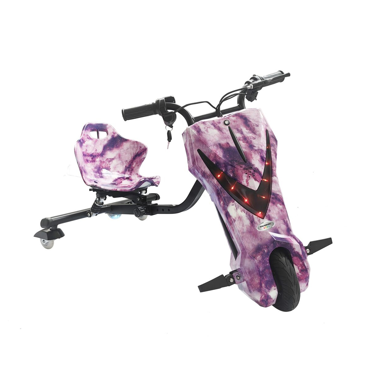 Электрический трицикл для детей Hausberg 250W 36V 4400 mAh розового цвета — отличный выбор для маленьких любителей приключений. Оснащён мощным мотором 250 Вт, он обеспечивает стабильную и безопасную работу. Литий-ионный аккумулятор 36V ёмкостью 4400 mAh гарантирует хорошую автономность, позволяя проезжать 10–15 км на одном полном заряде. Время зарядки составляет всего 3–4 часа, благодаря чему трицикл всегда готов к новым прогулкам. Максимальная скорость достигает 15 км/ч — это оптимально для безопасных и увлекательных поездок. Трицикл имеет 3 уровня регулировки скорости, которые можно подстроить под возраст и опыт ребёнка. Передние колёса оснащены светодиодной подсветкой, что придаёт оригинальный внешний вид и повышает видимость. Запуск осуществляется с помощью ключа, что добавляет уровень безопасности. Регулируемые сиденье и высота руля обеспечивают максимальный комфорт и эргономику. Встроенная подвеска делает поездку плавной даже по неровной дороге. Для дополнительной безопасности предусмотрены клаксон, световые сигналы и лазерная подсветка сзади. В комплект также входят защитный шлем и набор наколенников для максимальной защиты ребёнка. Интегрированный дисплей позволяет в реальном времени отслеживать уровень заряда батареи и текущую скорость. Современный дизайн и яркий розовый цвет делают этот трицикл настоящим украшением любой прогулки. Электрический трицикл Hausberg — это идеальное сочетание развлечения и безопасности на свежем воздухе.